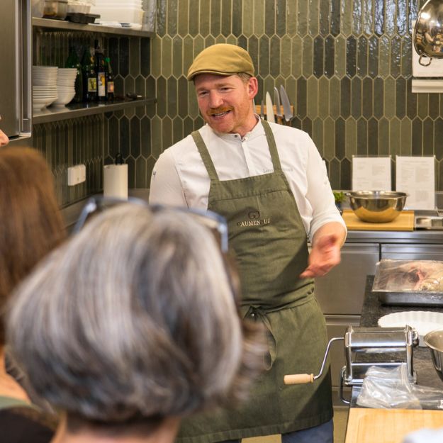 Bei den Kochkursen im Gaumengut teilt Lorenz seine Leidenschaft für gute Produkte, ehrliches Handwerk und echten Geschmack – persönlich, nahbar und mit spürbarer Freude am Tun. Hier geht es nicht um Perfektion, sondern um Genuss, Neugier und das gemeinsame Erleben.