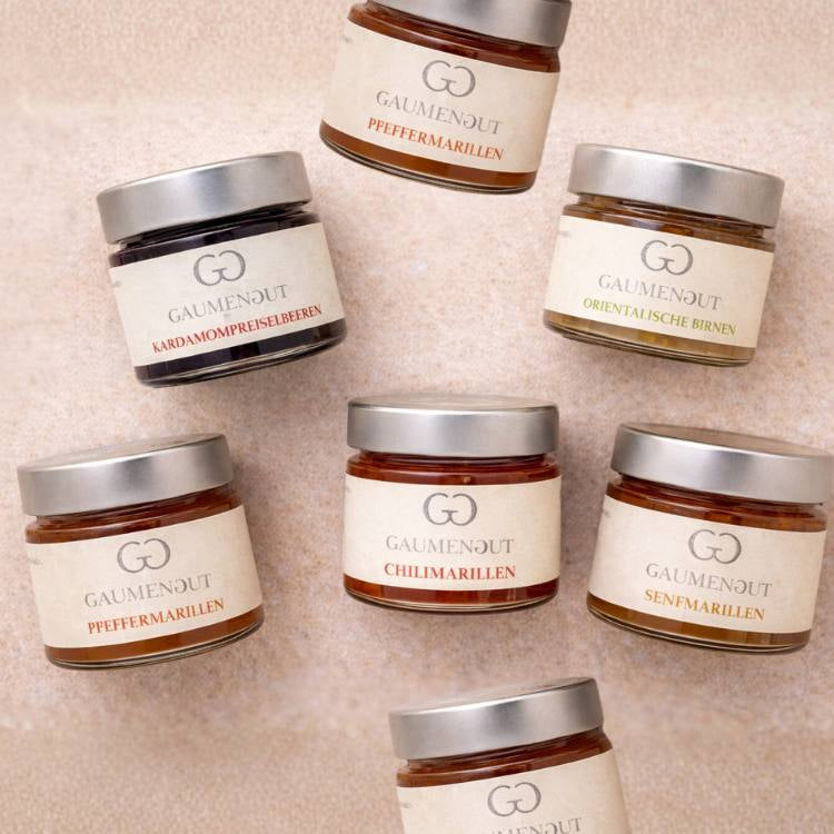 Unsere Köstlichkeiten stehen für ausgewählten Geschmack, sorgfältige Verarbeitung und ehrlichen Genuss. Ob fruchtig, würzig oder fein abgestimmt – unsere Gläser eignen sich ideal als kleine Aufmerksamkeit oder liebevoll zusammengestelltes Geschenk.